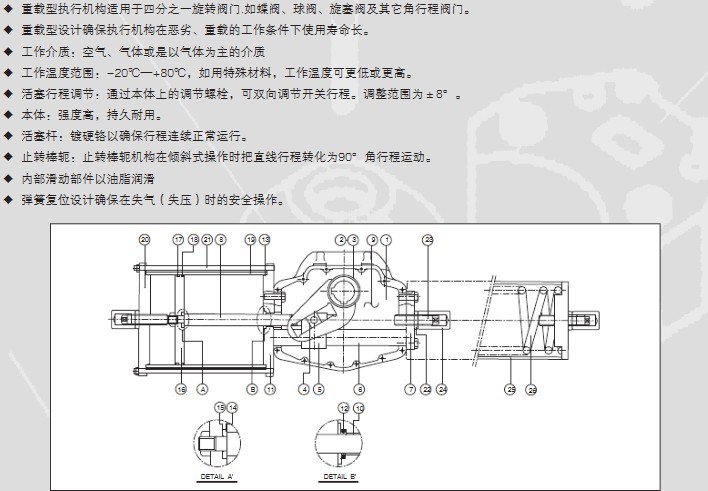 特性:1、為雙動作和單動作90度回轉型防水防塵執行器