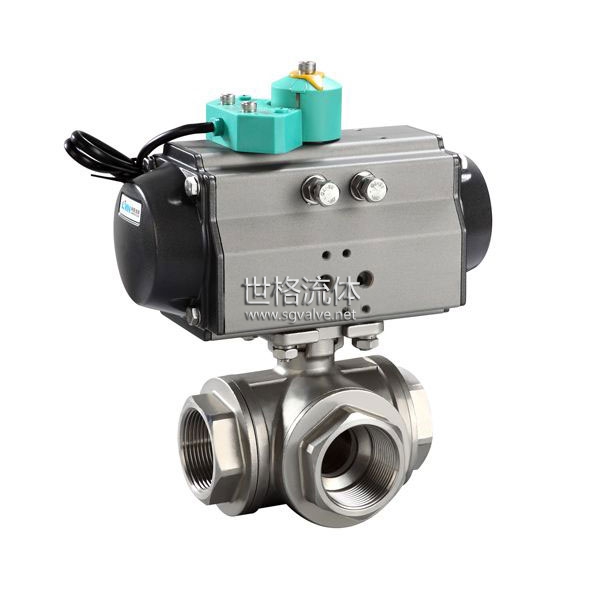 氣動三通螺紋球閥分L型和T型。L型三通球閥適用于介質流向的切換,能使相互垂直的兩個通道連通:T型三通球閥適用于介質的分流、合流或流向切換,T型孔道可以使三個通道互相連通或使其中兩個通道連通,三通球閥一般采用兩個閥座結構,亦可根據用戶要求采用四閥座結構。